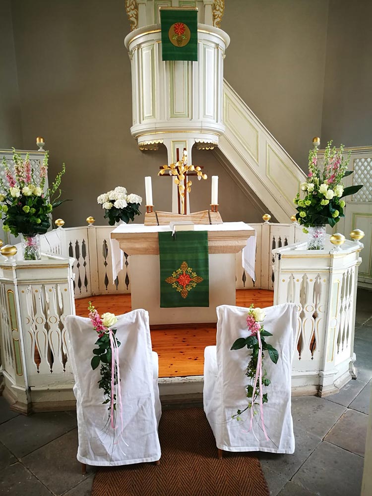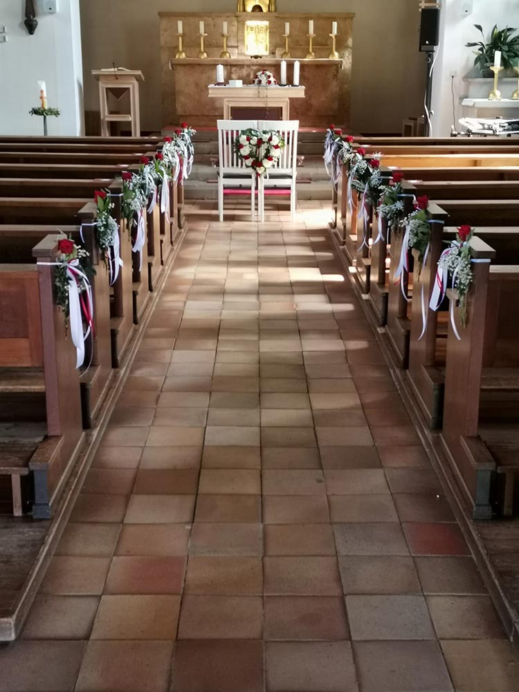 Mit unserer jahrelangen Erfahrung wissen wir genau, wie man den perfekten Brautstrauß bindet und die Kirche in einen Blütentraum verwandelt.