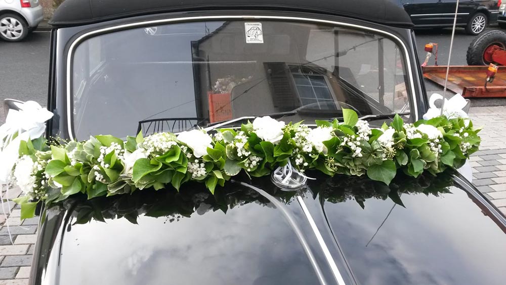 Auch Dein Auto wird dank uns zum blumigen Hingucker und deine Hochzeitslocation bekommt das gewisse Extra an Grünzeug.
